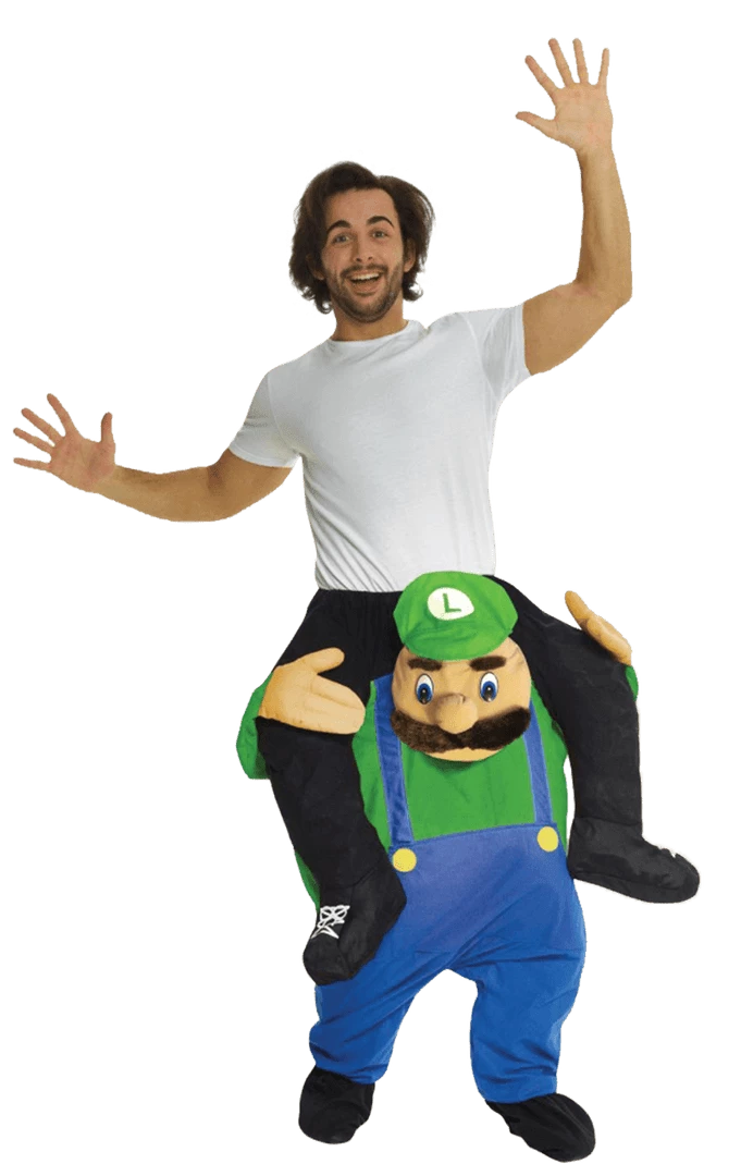The Adult Luigi Green Plumber Piggyback Costume is perfect for obstacle courses, stag dos and charity runs. Slip your legs into the costume and in a second it will look like you are being carried by a small Super Mario.