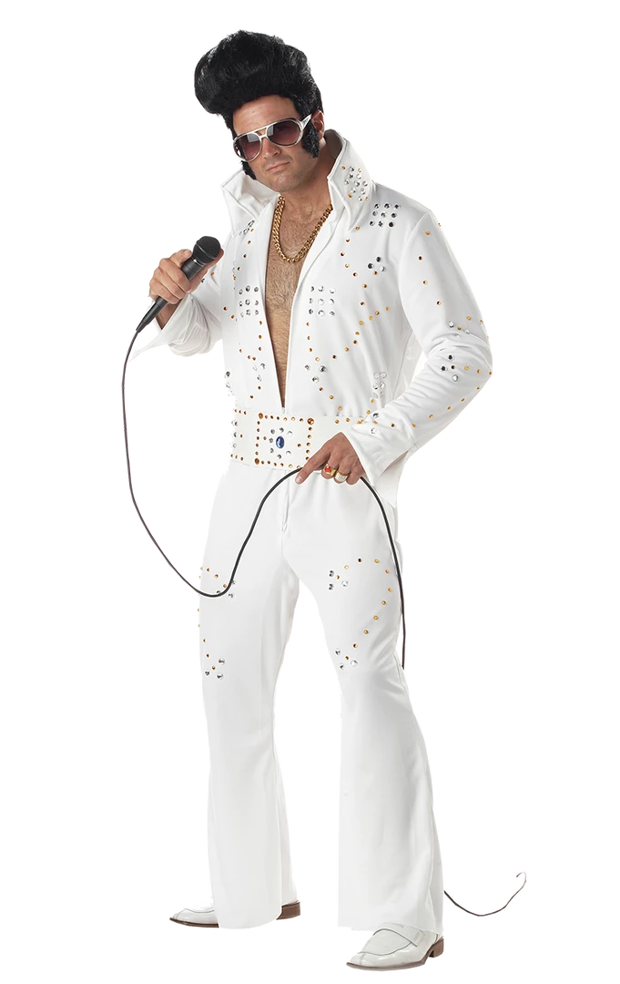 You’ll be the king of Rock ‘n’ Roll in his infamous white jumpsuit with dazzling jewels and gems. Bring on full blown Elvis mania! All you need now is to add the finishing touches of a trademark quaffed wig, disco sunglasses and a microphone accessory.