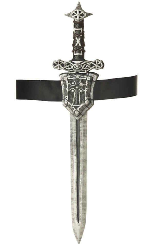 This Sword with Crusader Sheath Accessory is guaranteed to have you battling it out on the dancefloor. It features a 24” Inch long grey and black sword, a matching crusader sheath and an attached belt with material ties.