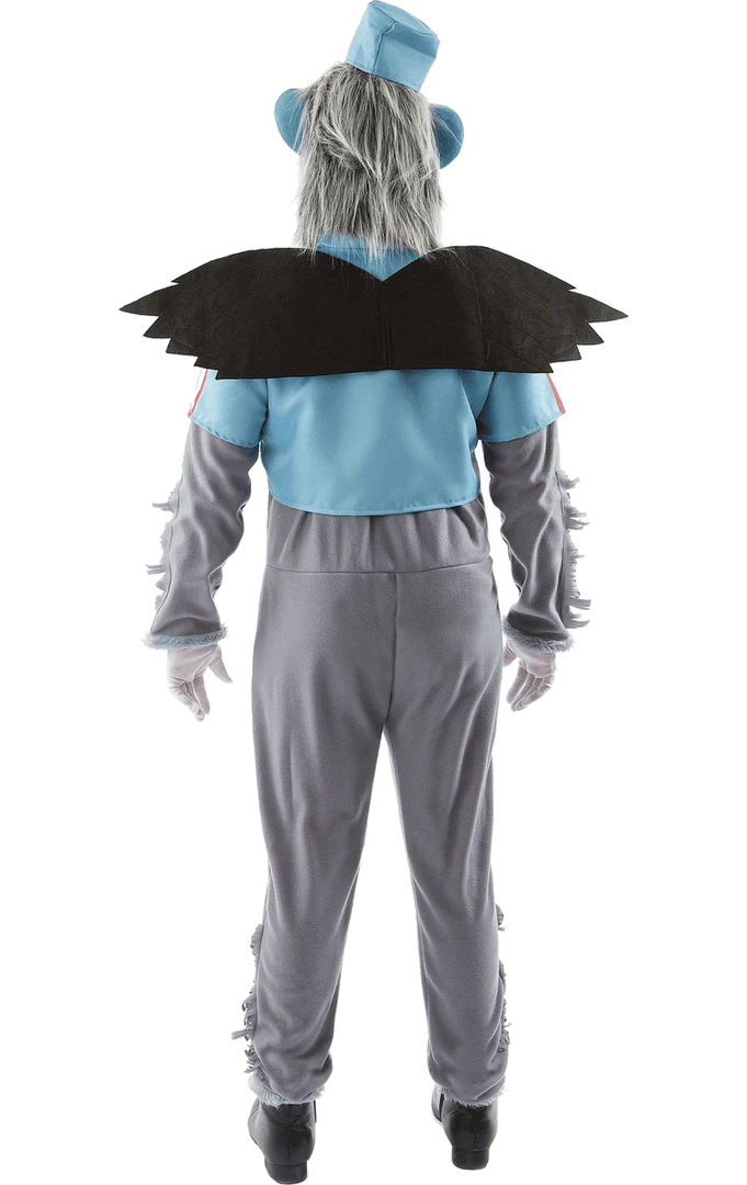 Includes: Bodysuit, Top with Detachable Wings, Mask, Hat