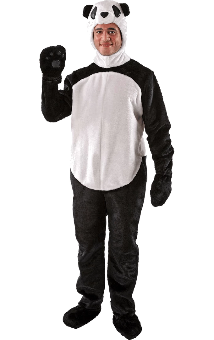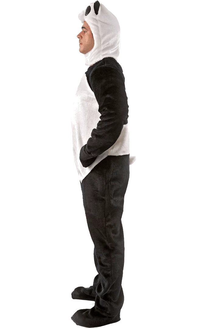 Eat bamboo in the Adult Panda Costume! This costume includes a stuffed black and white headpiece and matching furry jumpsuit with attached gloves and shoe covers.