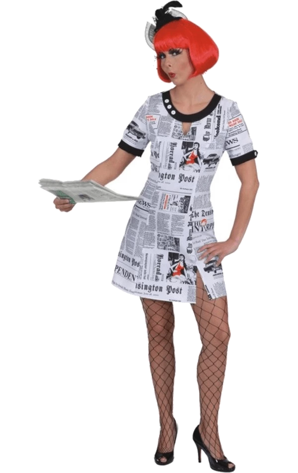 Be the first to read the news in the Fleet Street Hacking Scandal Dress! This dress is short and comes in white with a black printed newspaper design.