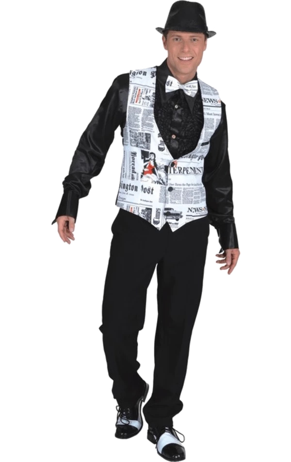 Read all about your costume in the Adult Fleet Street Hack Waistcoat! This waistcoat comes in white with a black printed newspaper design.