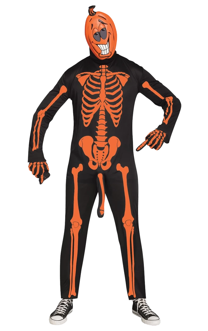 Is Halloween not risqué enough for you? Do you want to have a costume with a little bit extra bad taste? Then look no further than the Jack’O Meoff Halloween costume! It’ll turn every head at the Halloween party! If the bright orange pumpkin head, with skeleton body suit isn’t enough for you, it also comes with an extra special accessory. The attached ‘bone’