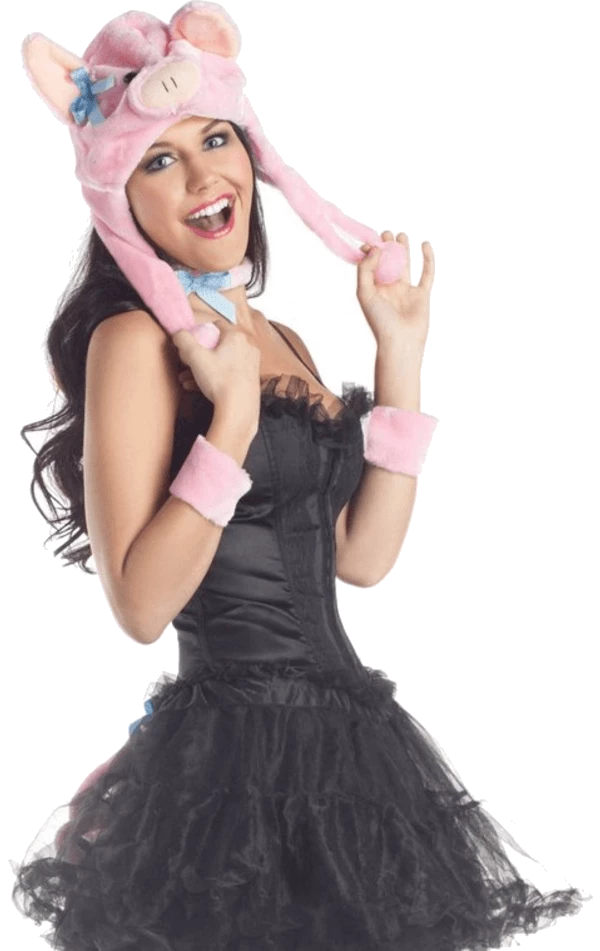 Instantly become cute and pink with the Adult Piglet Costume Kit! This kit includes a piglet hat, collar, wrist cuffs and curly tail.