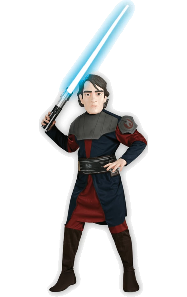 Enter the fiction of Star Wars with the licensed Child Clone Wars Anakin Skywalker Costume! The costume includes a printed tunic, black trousers, a belt and an Anakin Skywalker mask.