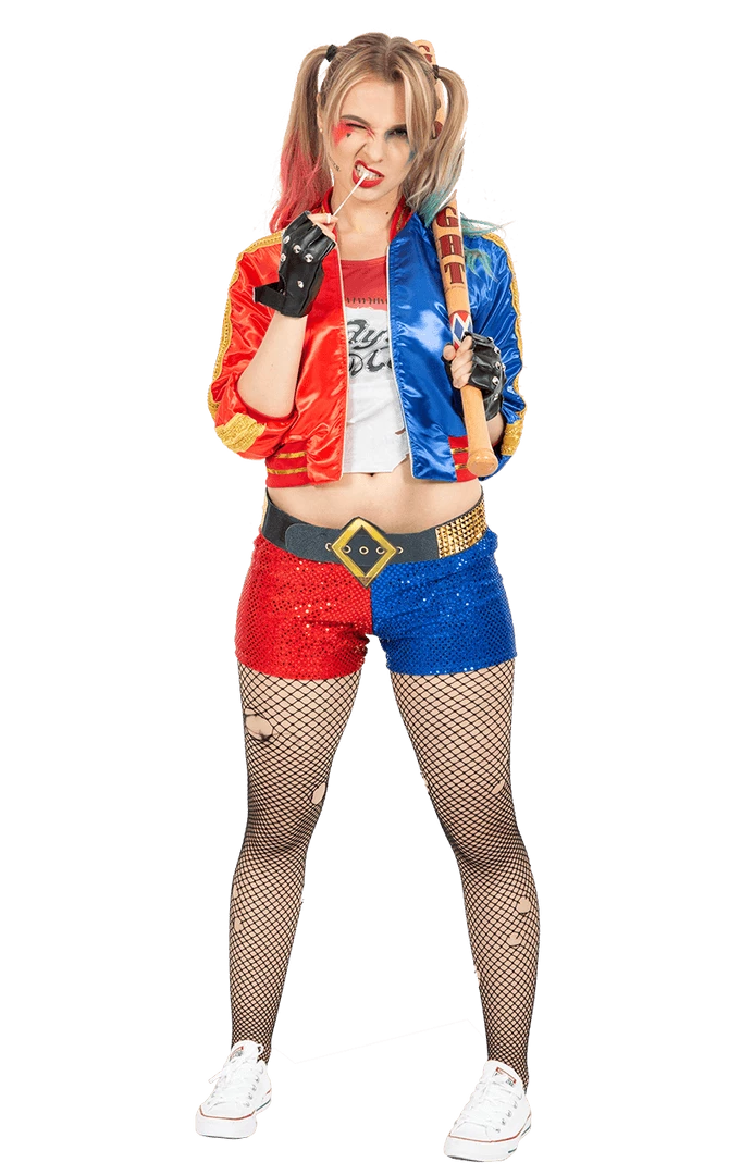 This is definitely a top choice if you are dressing up for Halloween, Comic Con, hen parties, superhero or film fancy dress. Complete the outfit with a Harley Quinn Bat to look like a real badass.