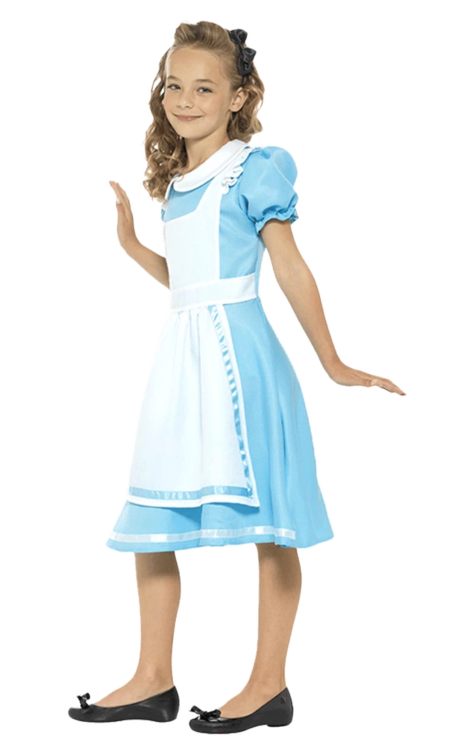 Includes: Dress with attached apron, Headband