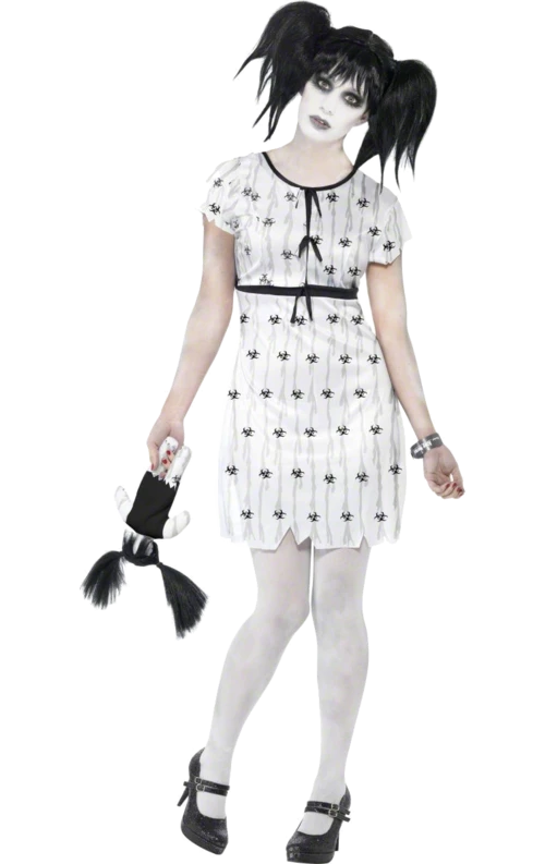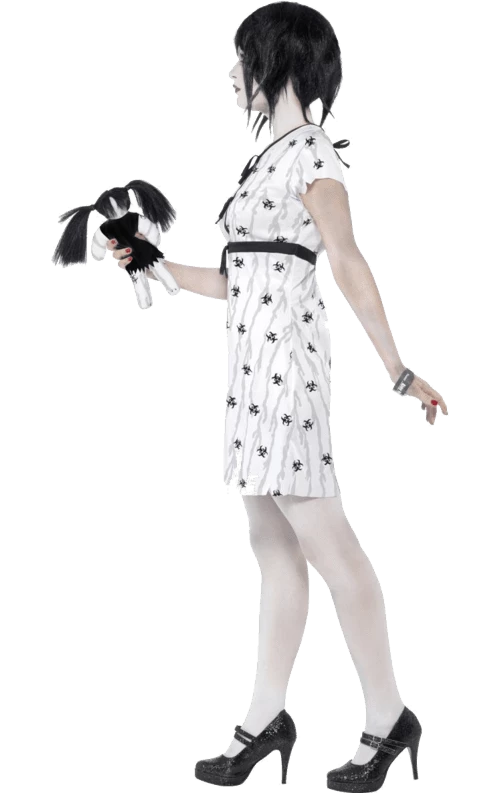 Act unhinged in the Adult Abby Normal Costume! This costume includes a short black and white dress, wristband and doll.