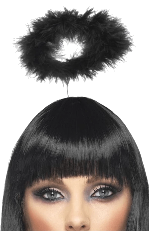 Made from feathers, this cute Black Angel Halo Accessory is attached to a headband with a tiny unnoticeable string so you can position it above your head whichever way you like.