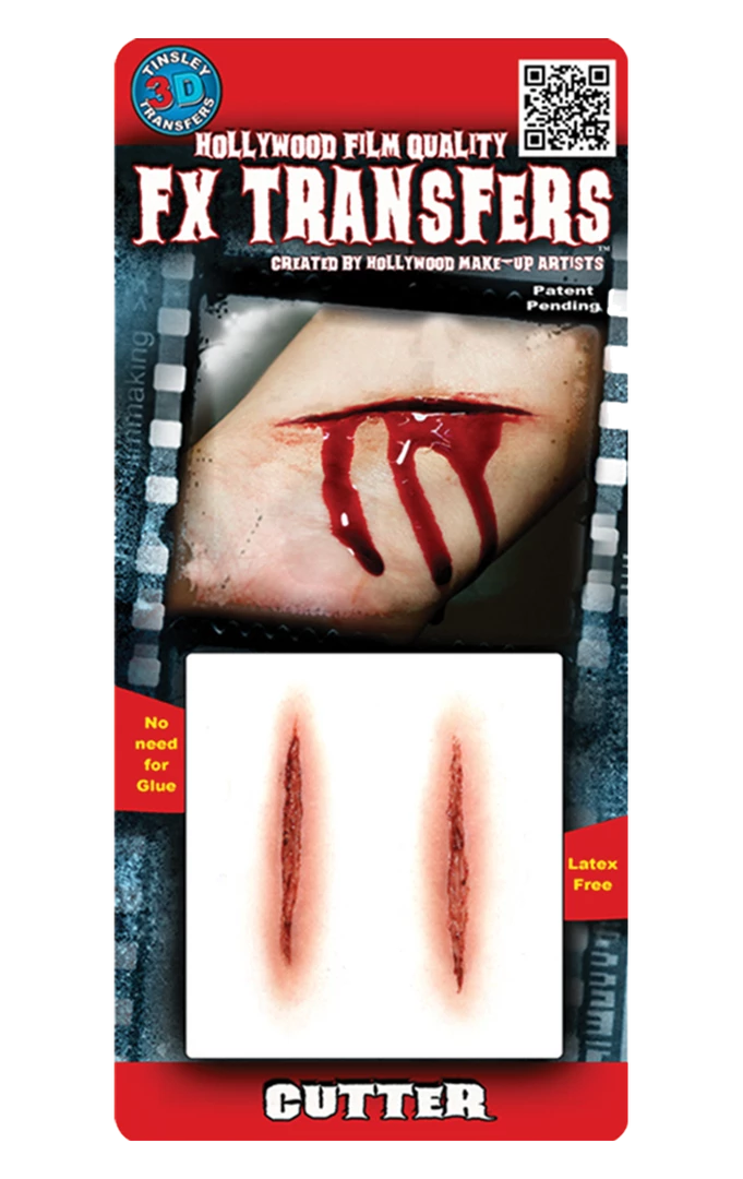 Wow! That will be the reaction of shocked Halloween party goers as they gasp at your oozing wounds! They won’t be real of course because you’ll have used the Cutter 3D FX Transfers, but the effect will be exactly the same as if they were!